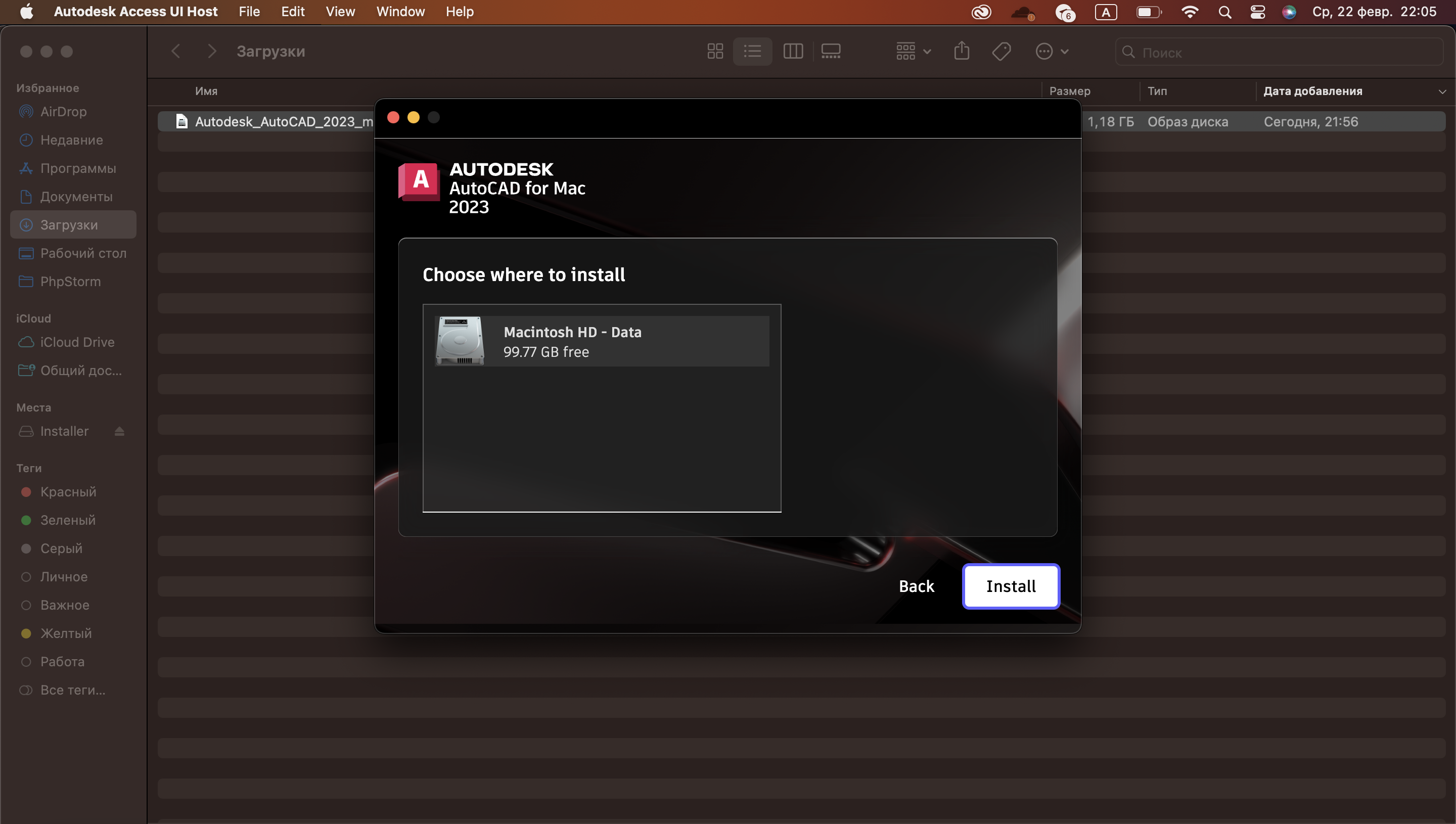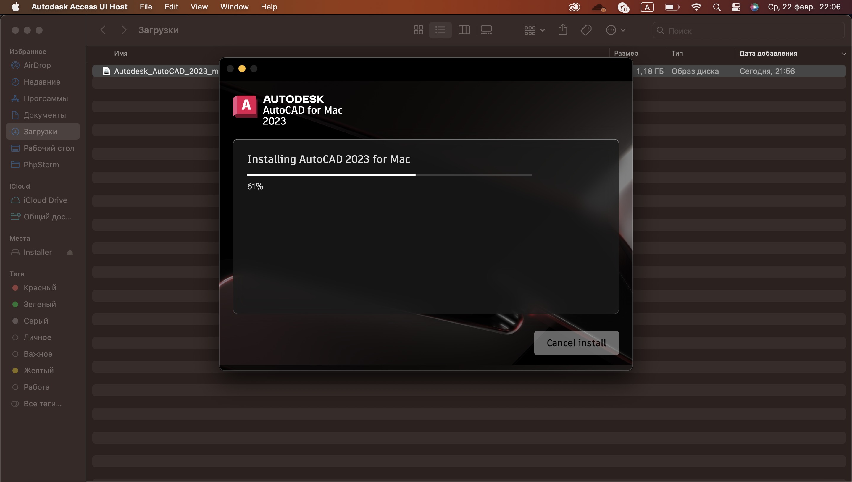 Процесс установки AutoCAD на macOS